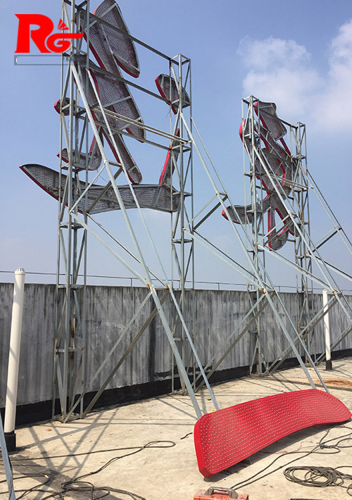 2,樓頂?shù)慕Y(jié)構(gòu),大多數(shù)樓頂結(jié)構(gòu)是沒(méi)有受力點(diǎn)預(yù)埋件,即沒(méi)有為長(zhǎng)沙樓頂發(fā)光字做設(shè)計(jì),長(zhǎng)沙樓頂發(fā)光字鋼結(jié)構(gòu)與樓頂部無(wú)法結(jié)構(gòu)焊接(樓層頂部是不能破壞,防止漏水),在這種情況下,就要做配重,即用配重的重量來(lái)承擔(dān)長(zhǎng)沙樓頂字所受的風(fēng)力,簡(jiǎn)單的說(shuō)就是用混凝土壓住鋼結(jié)構(gòu)的受力點(diǎn)。